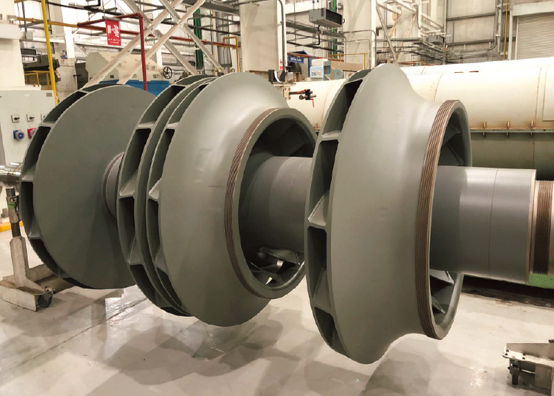 By coating the gas flow surfaces of the compressor rotor and the stationary parts with PTFE(note), the surface roughness is significantly reduced, preventing imbalances due to polymer adhesion caused by gases released during operation. This allows for continuous long-term operation. MCOSA’s rotor maintenance Value Up Menu services include both new and repeated coating.