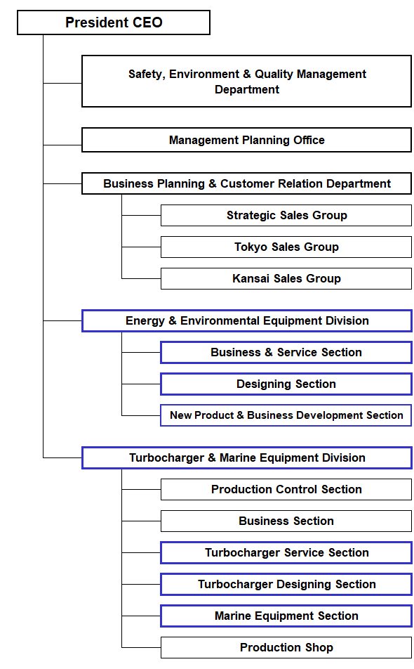 | Objects | Development, design, production, sale, after-sales service and liscensing of marine boiler,turbine, turbocharger, marine auxiliary machinery and steering gear. Sale of marine machinery, its related machinery which is designed and /or manufactured by Mistubishi Heavy Industries, Ltd. and our group companies. |