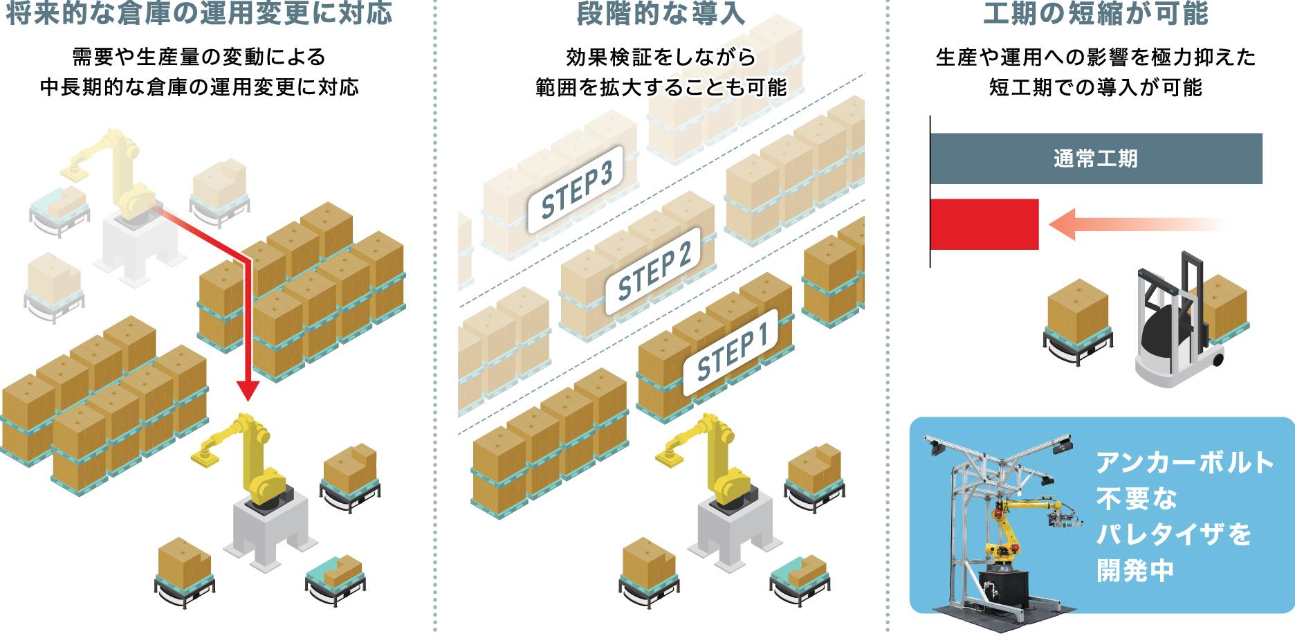これら3つのコンセプトにより、トラック待機の最小化、蔵置密度の最大化、スループット(処理能力)の向上、オペレーター不足への対応といった、物流現場が抱える課題の解決を目指します。