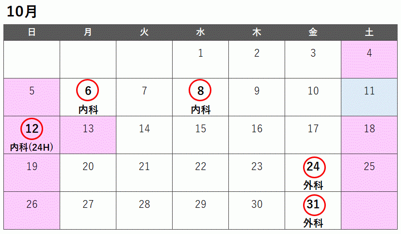 当院は、神戸市内の病院で輪番制を組み、夜間・休日の救急急病診療を行う一般社団法人神戸市第二次救急病院協議会に参加し、輪番日については、通常の夜間・休日とは異なる診療体制を組んでおります。