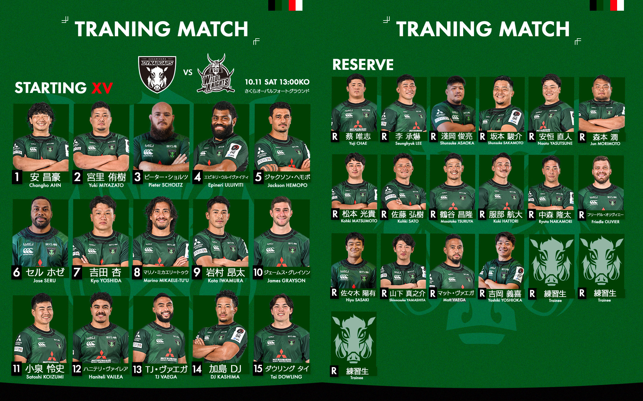 メンバー・結果更新|トレーニングマッチ 埼玉パナソニックワイルドナイツ 対 三菱重工相模原ダイナボアーズ