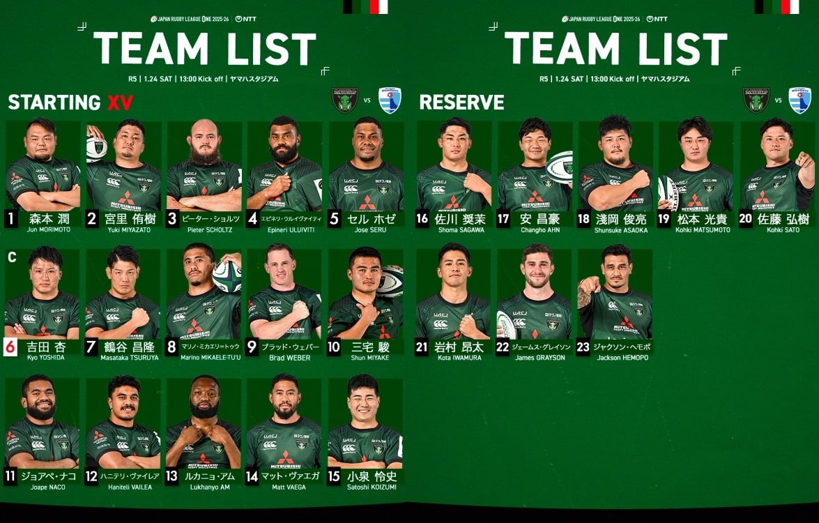 試合メンバー更新|NTTリーグワン2025-26第5節 静岡ブルーレヴズ 対 三菱重工相模原ダイナボアーズ