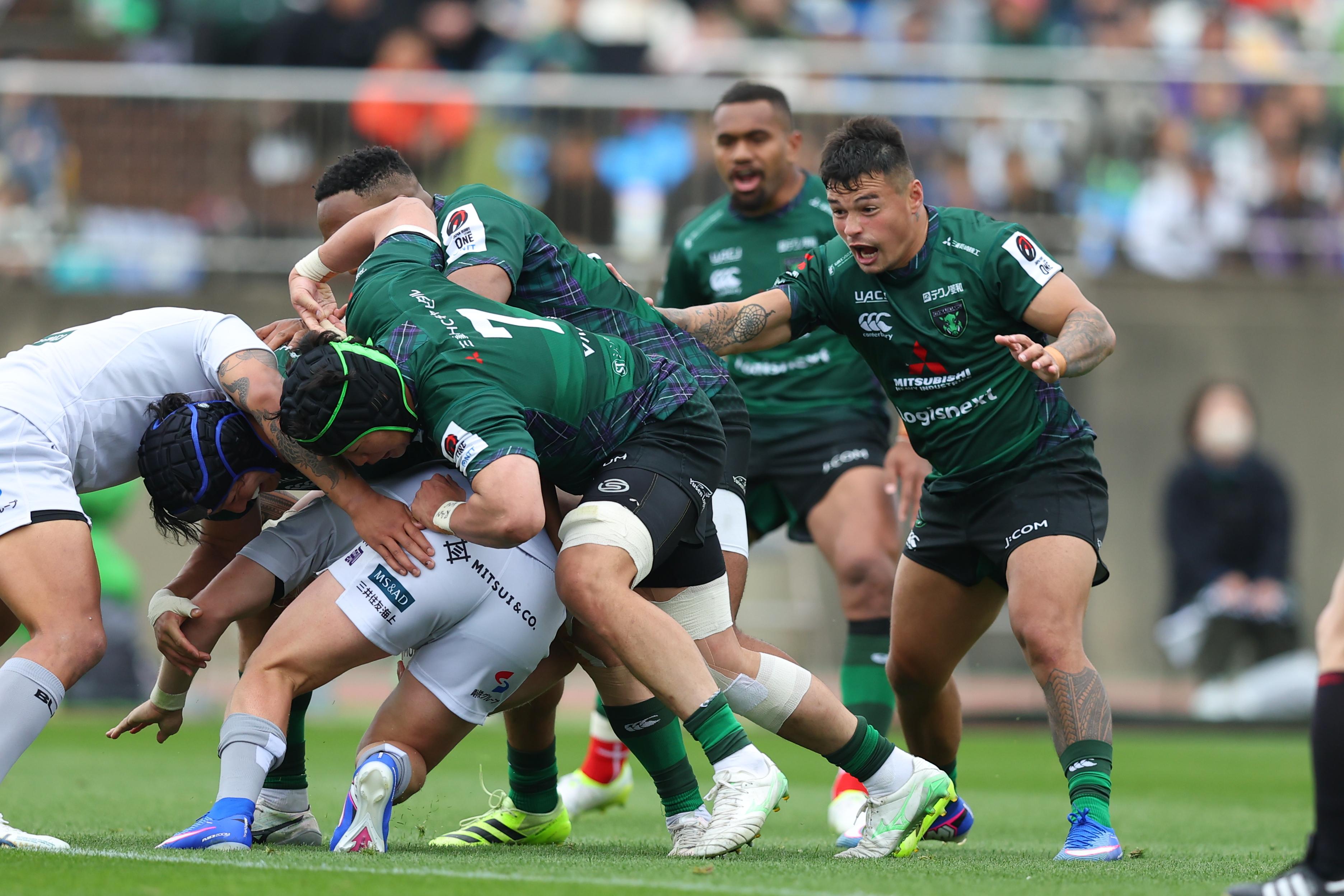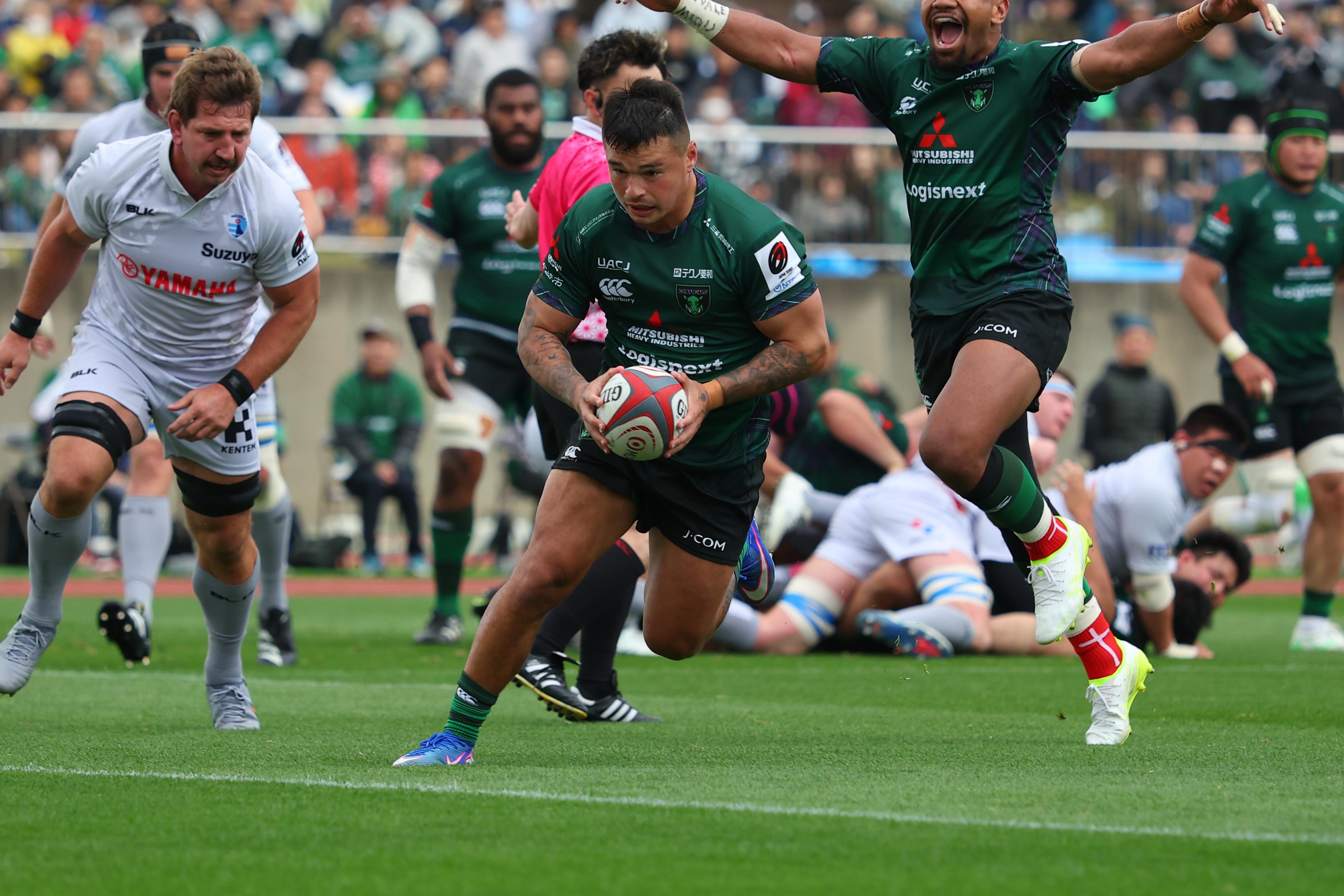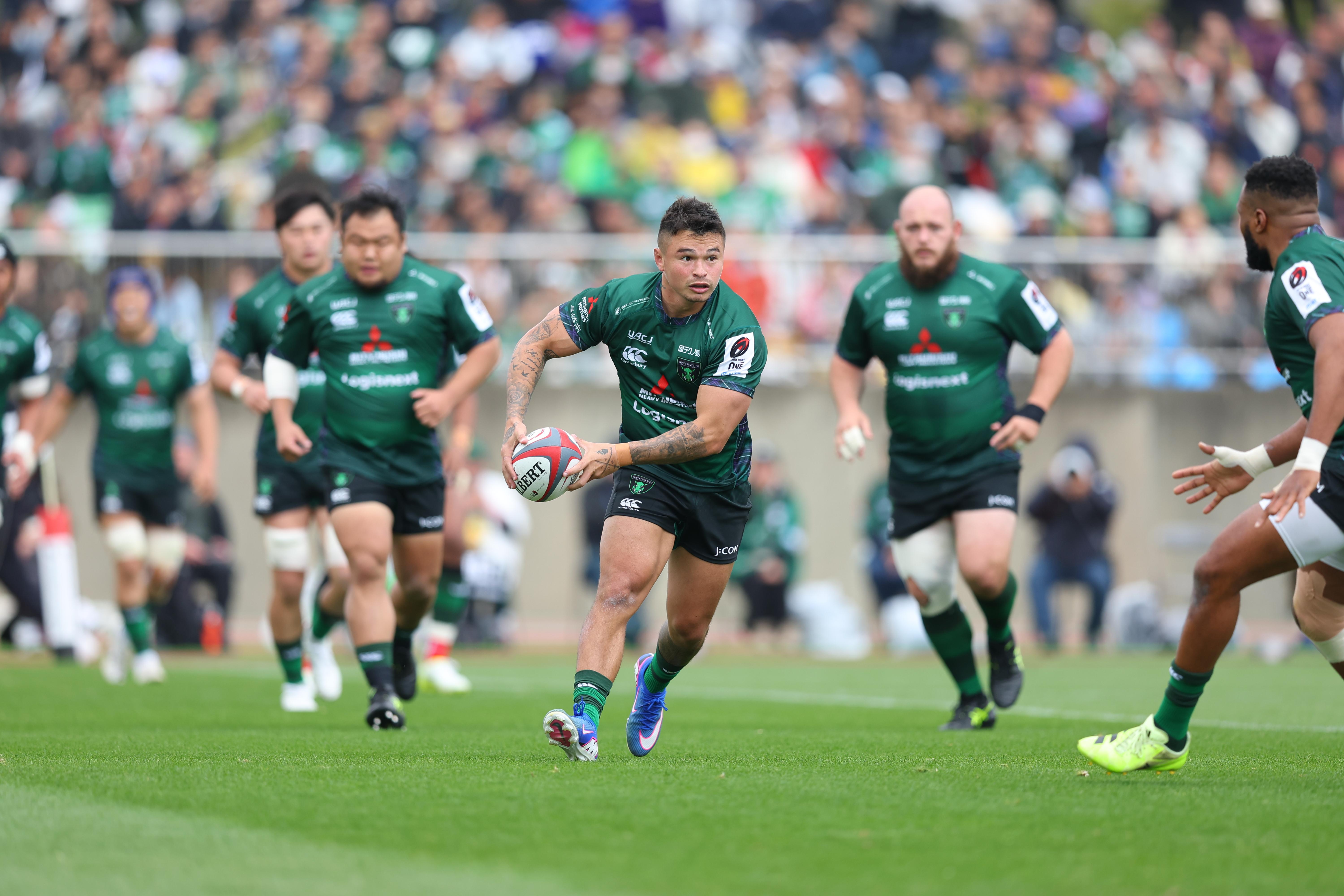 試合は序盤から激しく動いた。風上に立った前半、ダイナボアーズがプラン通りのラグビーを展開。グレン・ディレーニーHCが「狙い通りのラグビーができました」と振り返る通り、テンポの良い攻撃で次々とスコアを重ねた。圧巻はSHブラッド・ウェバーのトライだ。かつてのチームメイトから学んだという鮮やかなフェイントでディフェンスを翻弄し、敵陣を切り裂いた。前半をリードして折り返し、勝利への期待は高まった。