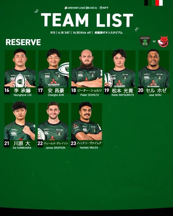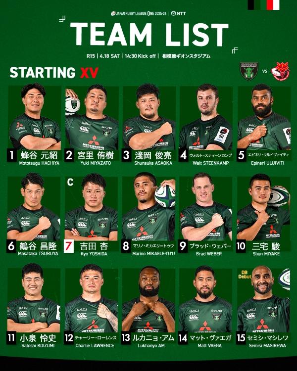 三菱重工相模原ダイナボアーズは4月18日、相模原ギオンスタジアムでNTTジャパンラグビーリーグワン2025-26ディビジョン1第15節に臨み、東芝ブレイブルーパス東京に26-45で敗れた。