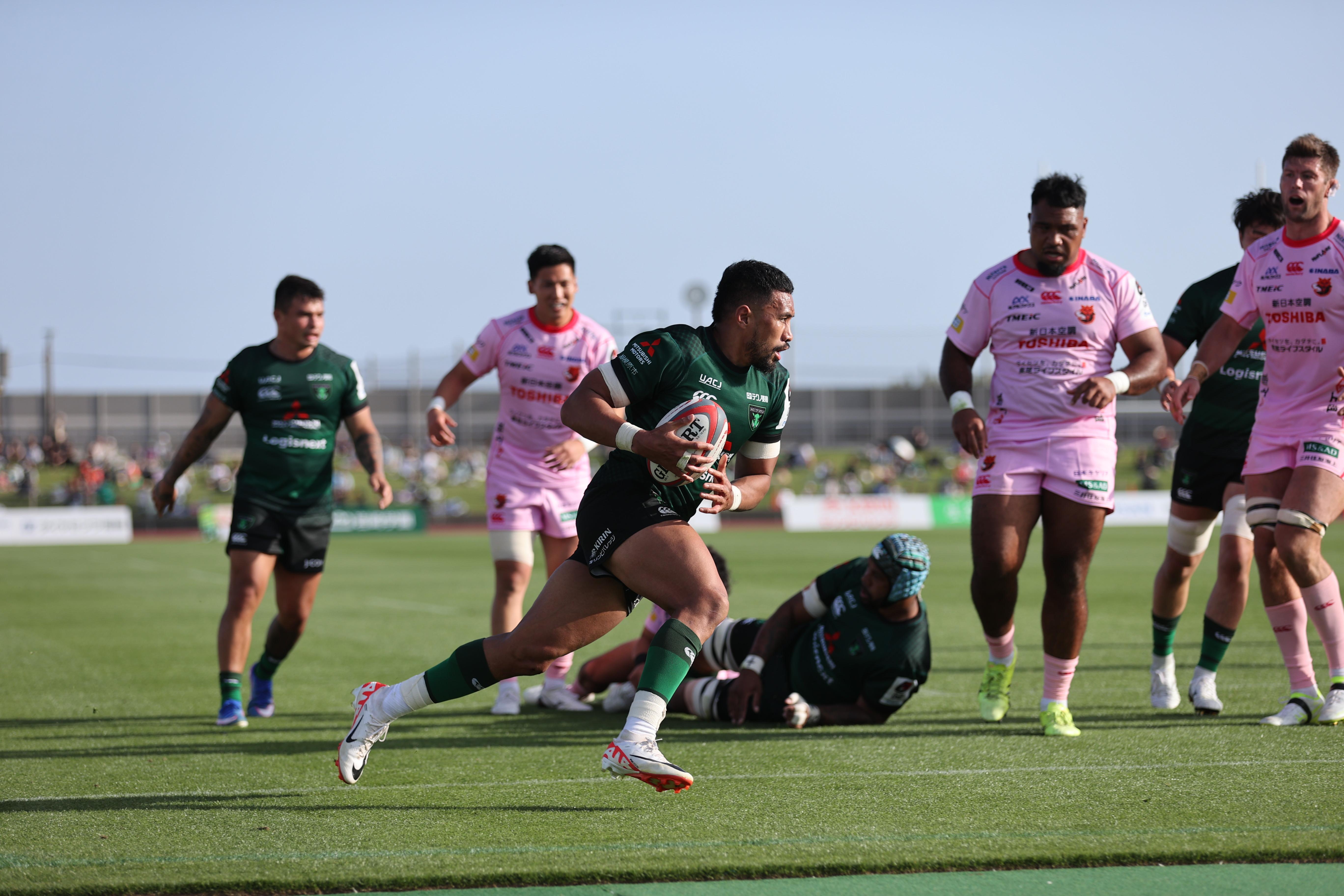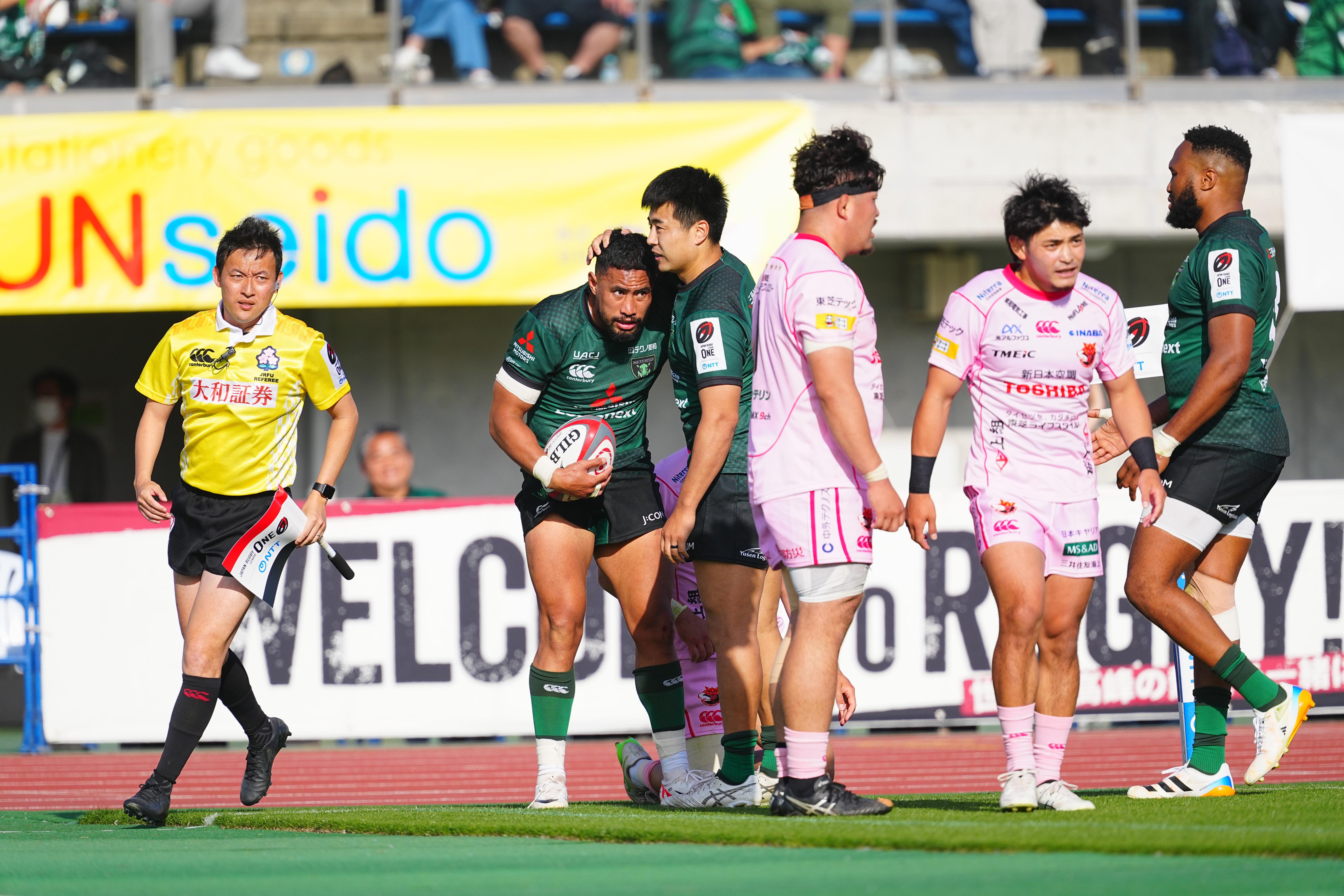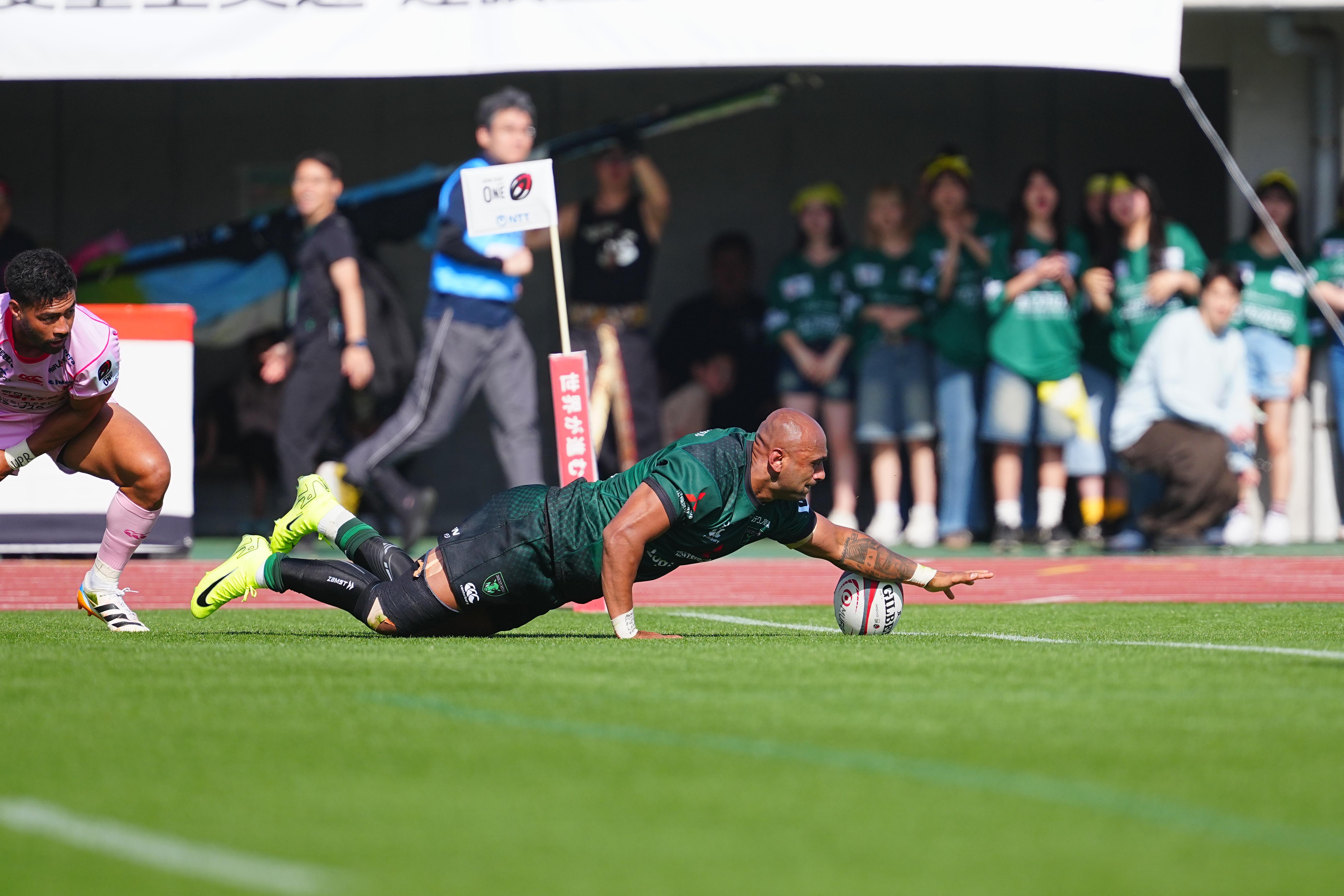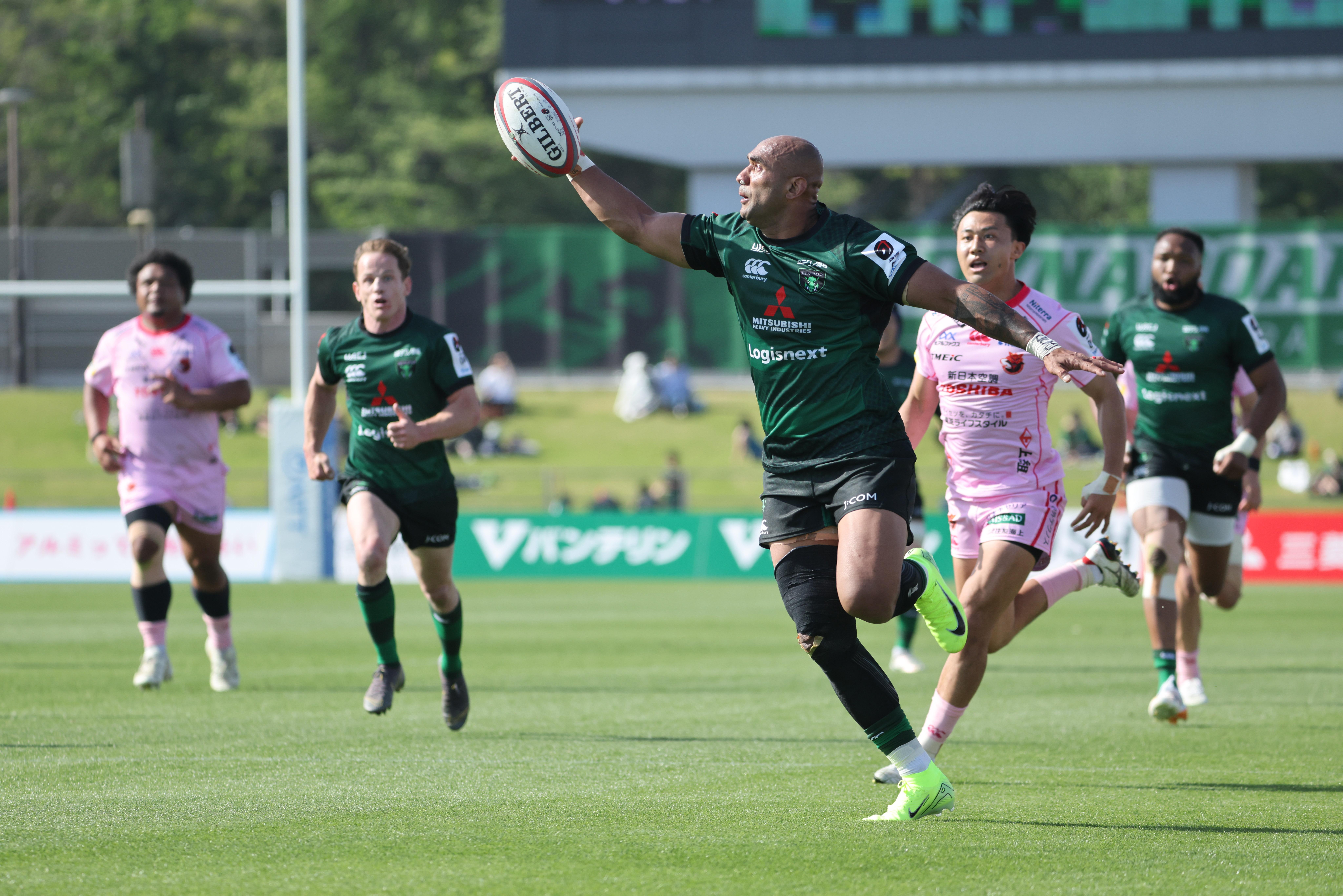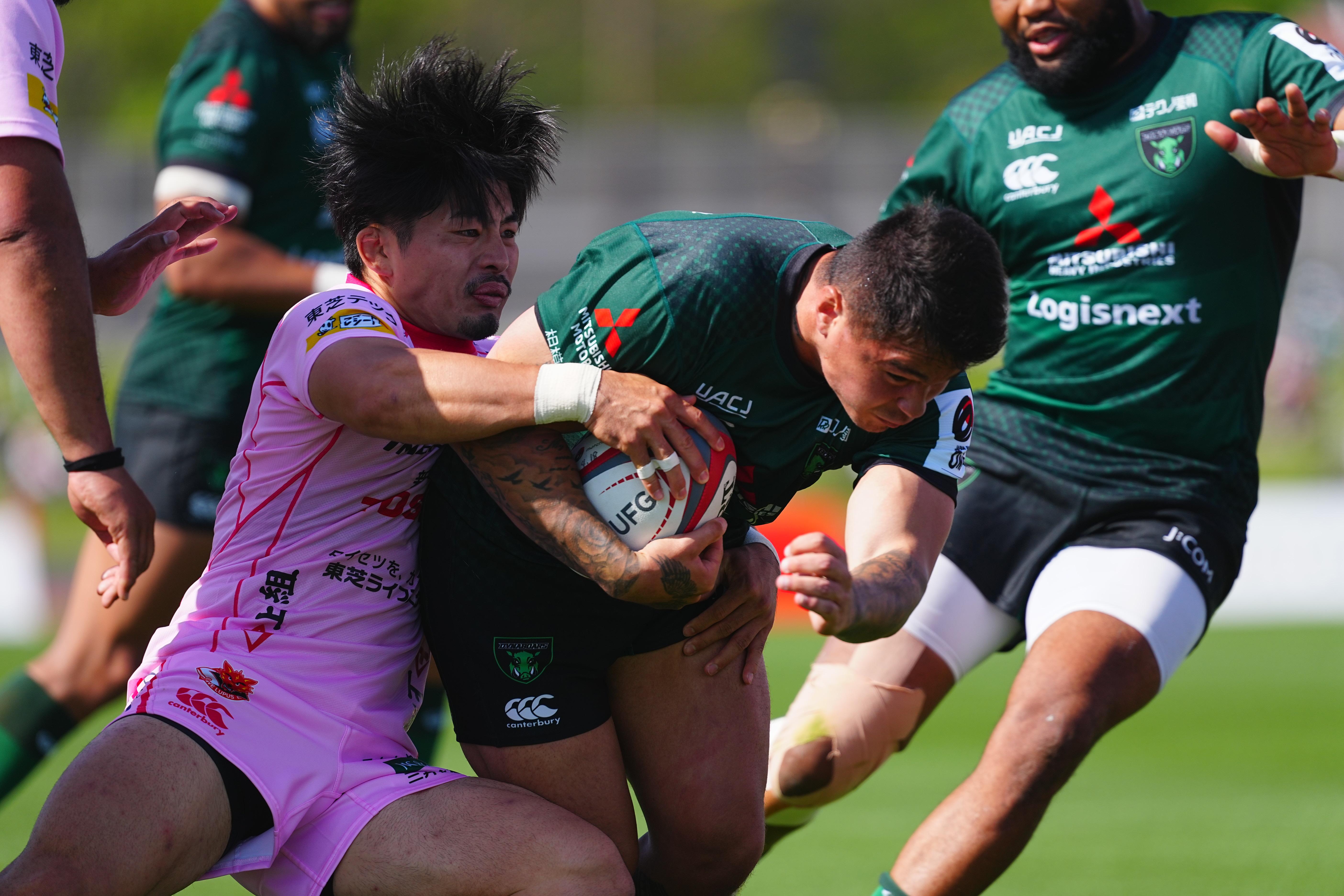 後半も序盤は点差を広げられたが、ダイナボアーズは終盤に意地を見せる。ヴァエガが3トライを挙げ、最後まで攻撃的な姿勢を貫いた。
