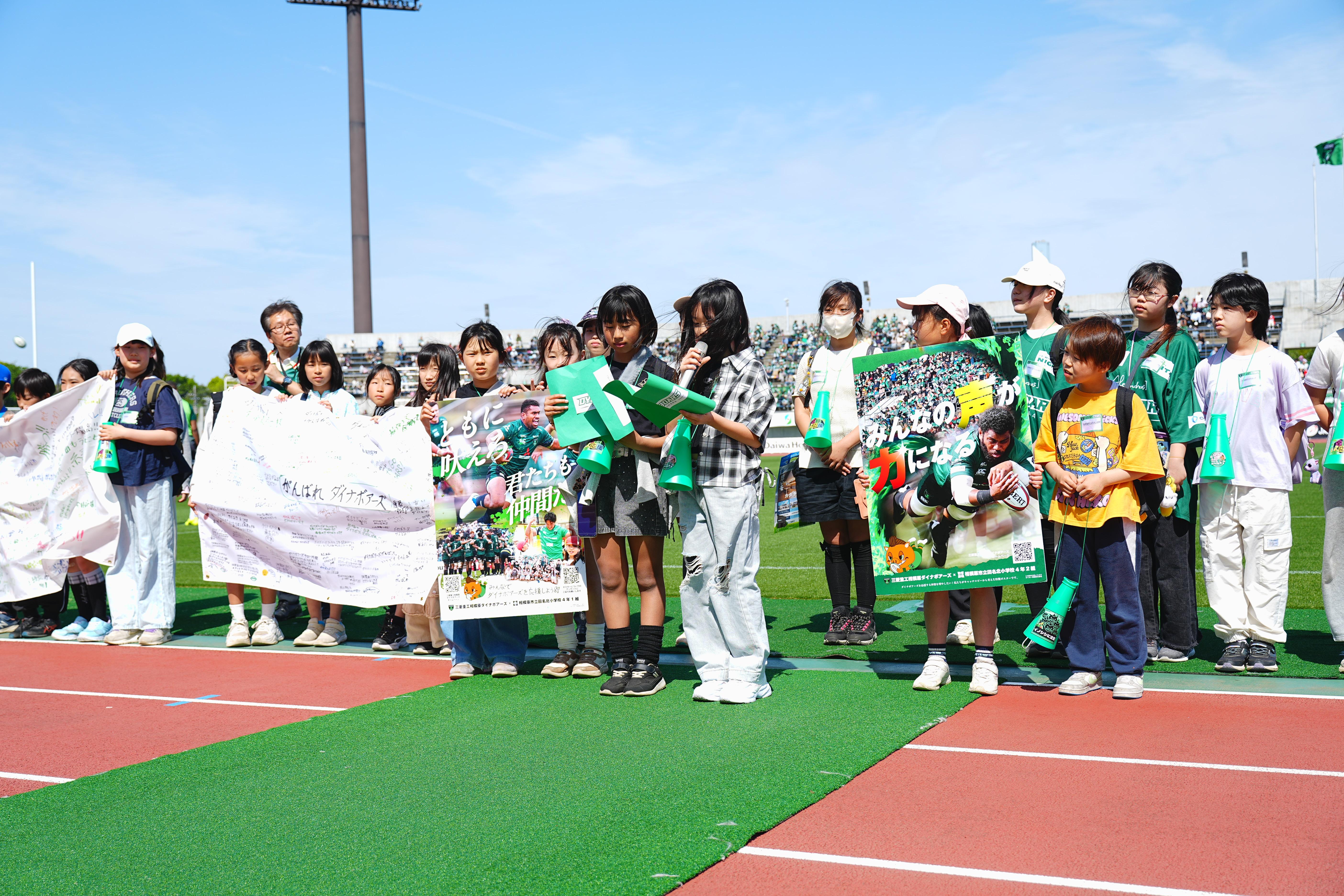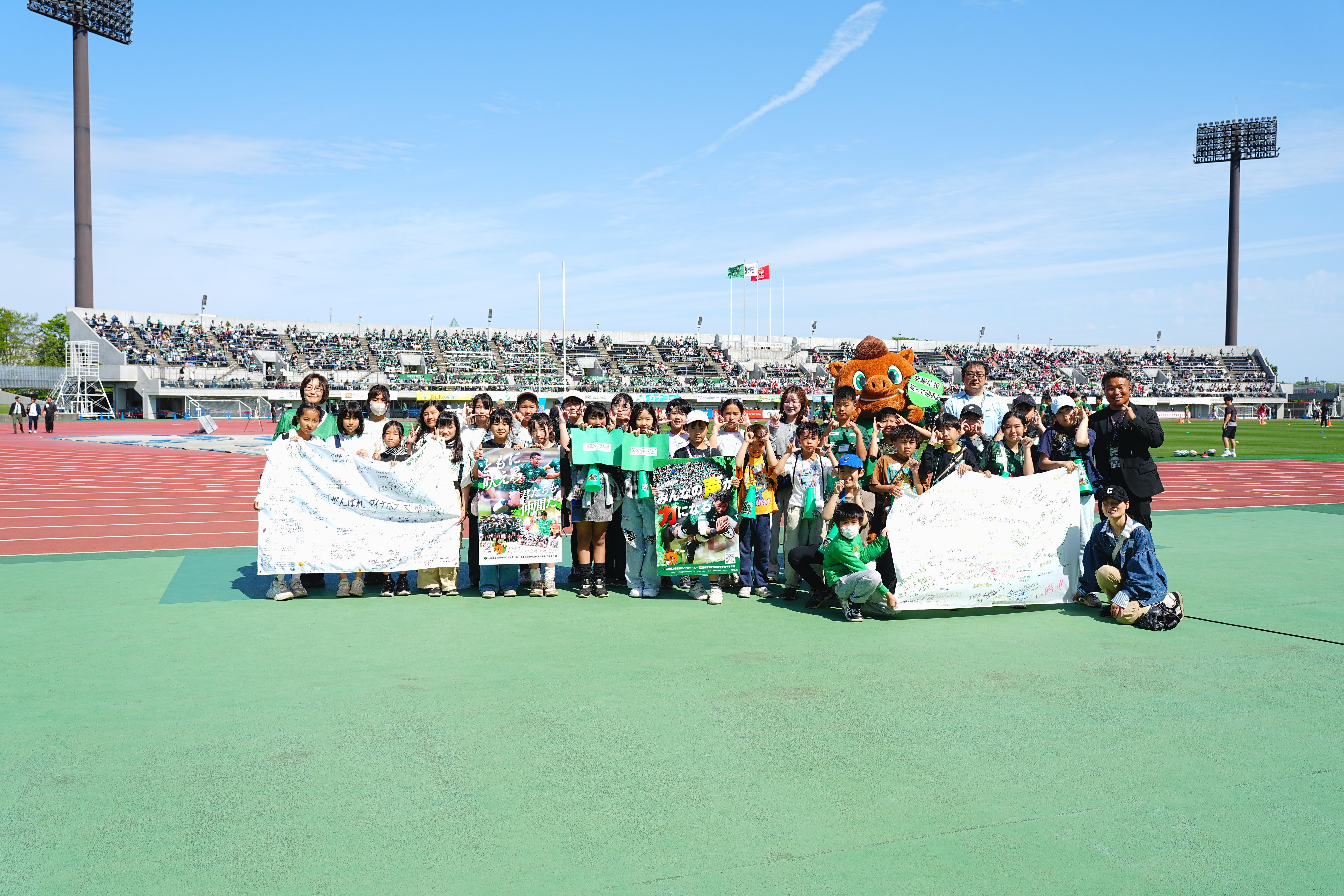 総合学習でダイナボアーズの応援ポスターを作り、試合会場で応援メッセージを送ってくれました!