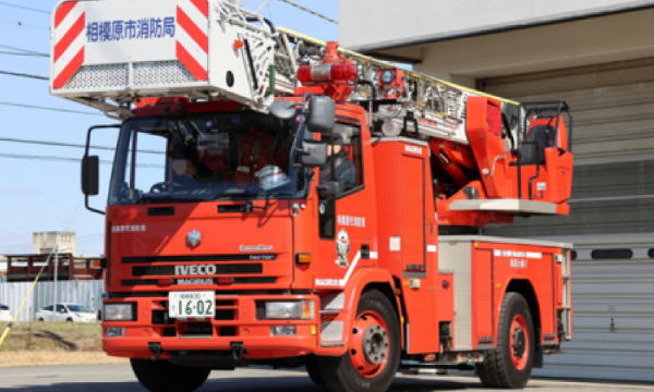 ■相模原市消防局PRブース …はしご車展示、子供用防火衣体験、オリジナルシールの配布