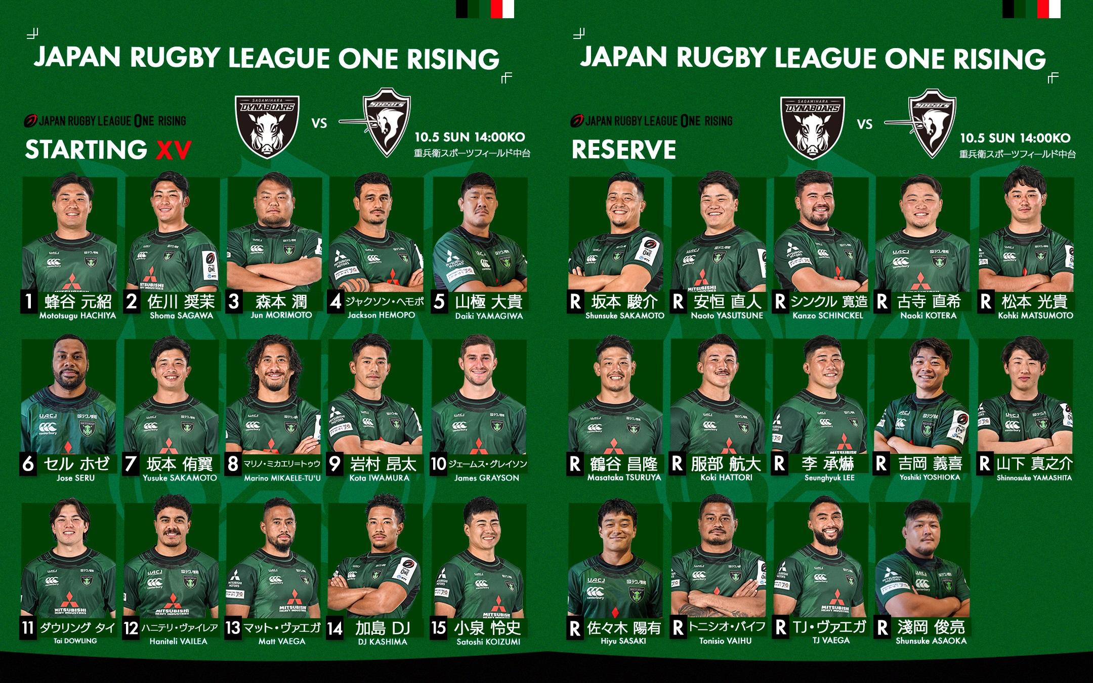 ジャパンラグビー リーグワン ライジング 2025|クボタスピアーズ船橋・東京ベイ 対 三菱重工相模原ダイナボアーズ