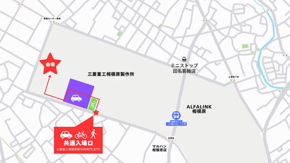 三菱重工相模原製作所 駐車場・駐輪場をご利用ください。