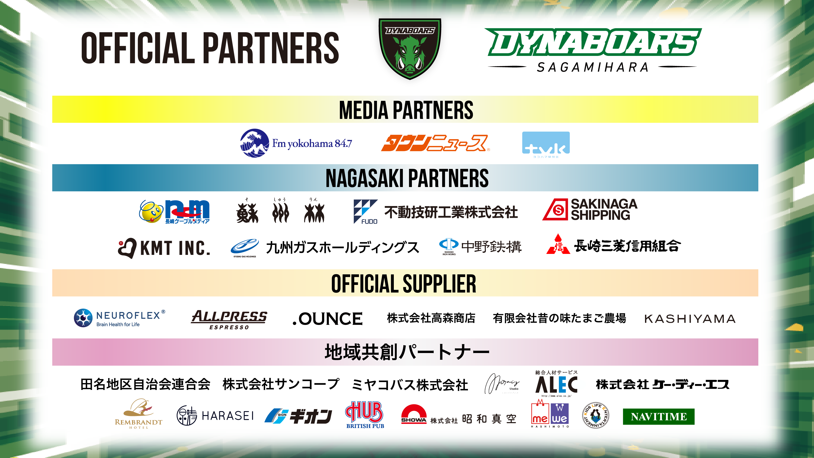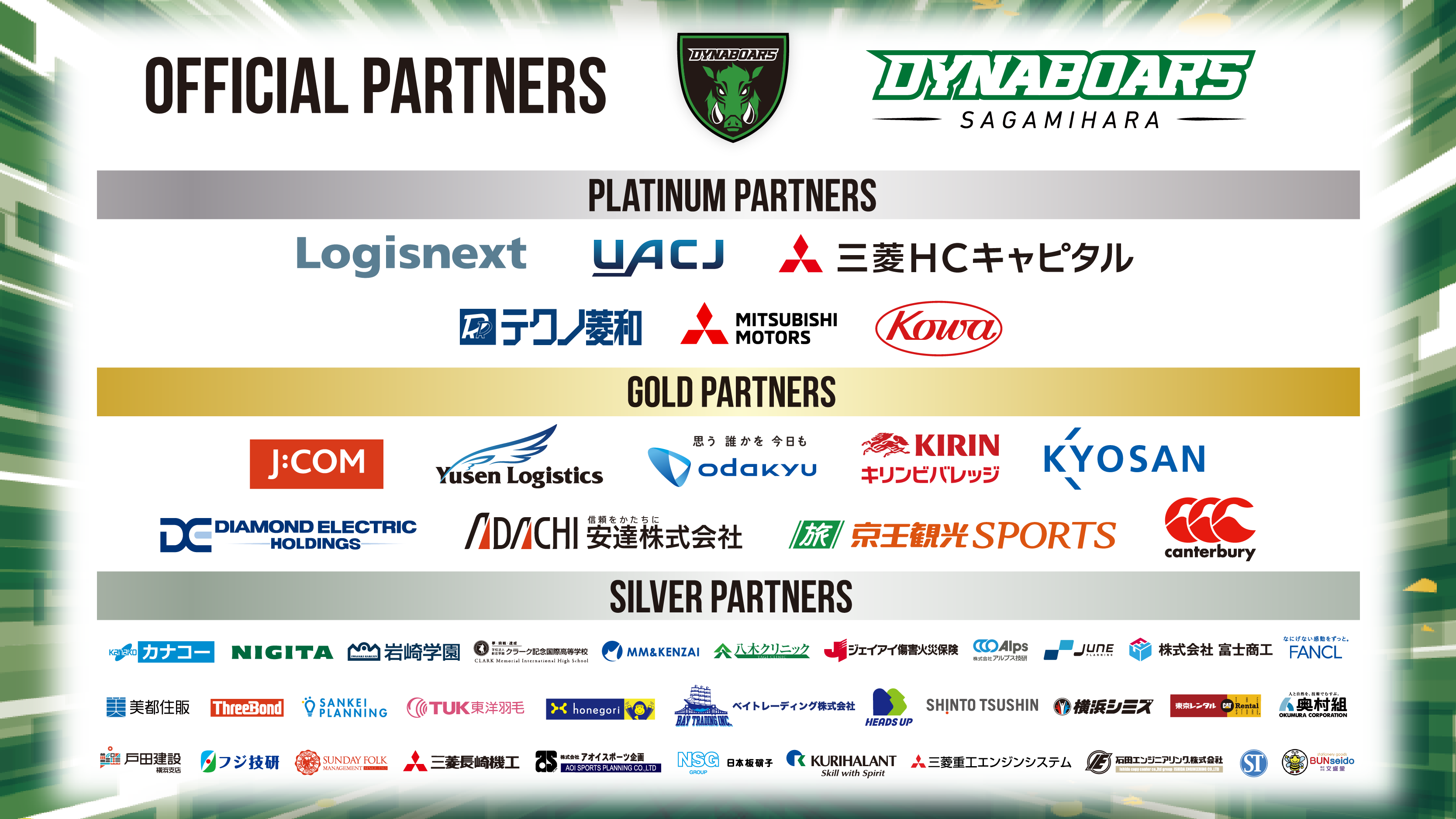 三菱重工相模原ダイナボアーズは、2025-26シーズンオフィシャルパートナーが決定しましたので、お知らせいたします。ダイナボアーズは以下のパートナーの皆さまとともにシーズンを戦います。