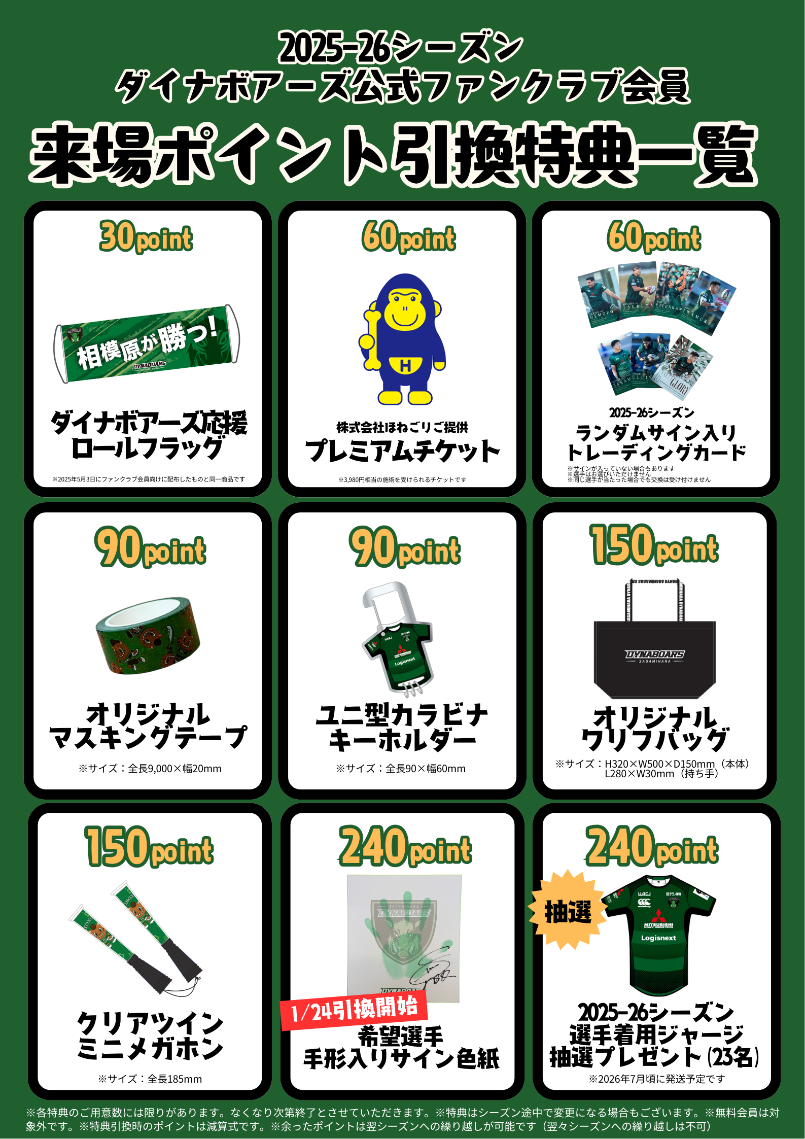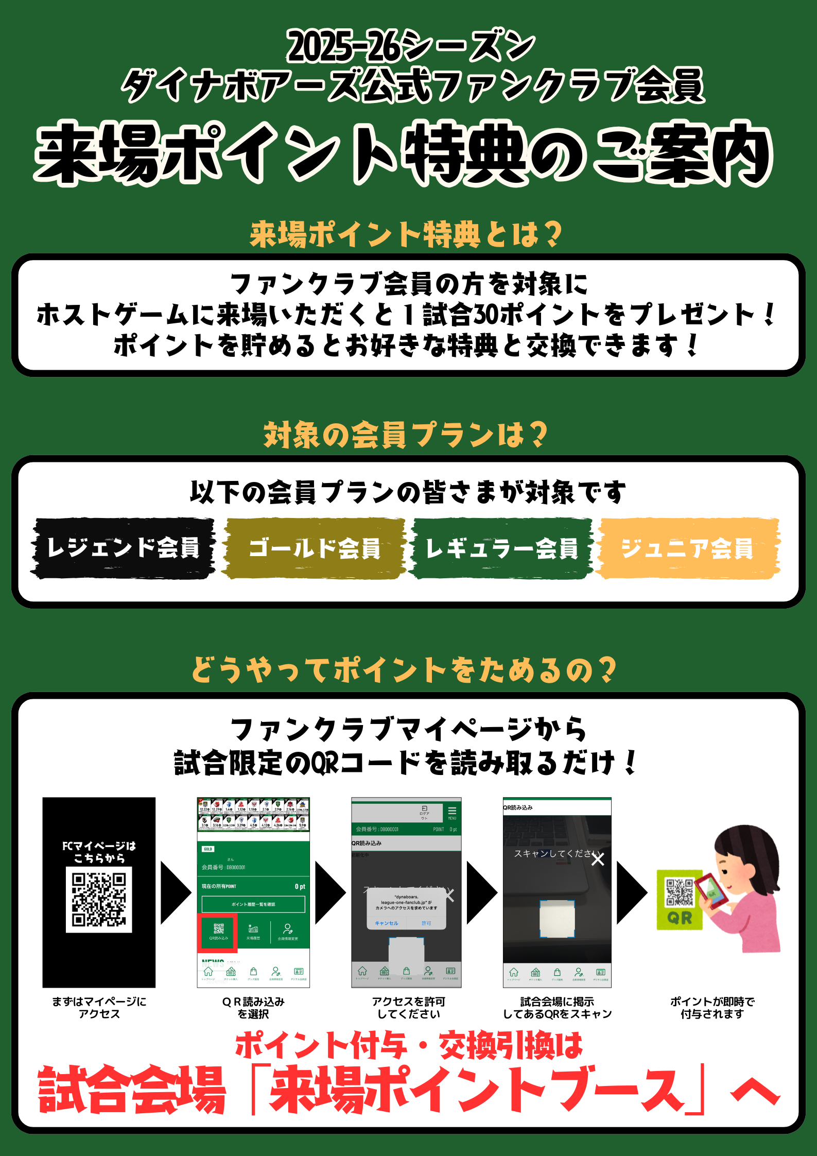 2025-26シーズンも公式ファンクラブ会員の皆さまを対象に来場ポイント特典を実施します。