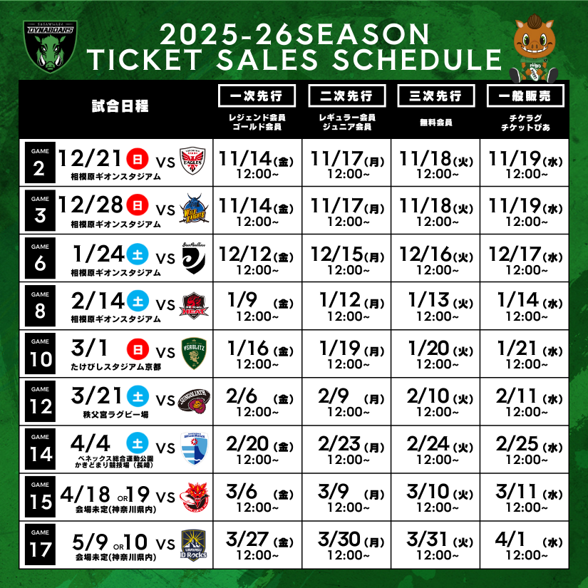 1.2025-26シーズン座席図・価格 2.チケット購入方法 3.チケット発売スケジュール 4.注意事項