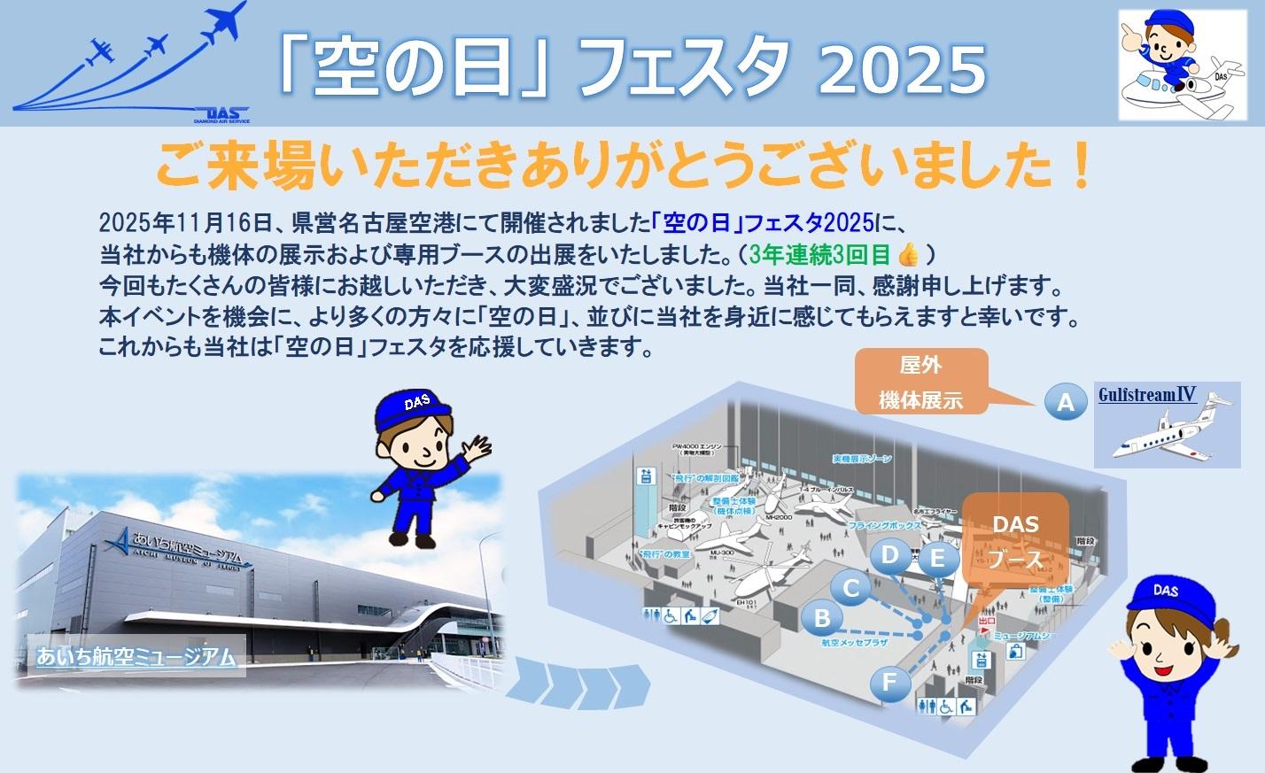 2025年11月16日に県営名古屋空港で行われた「県営名古屋空港『空の日』フェスタ2025」に協賛しました。