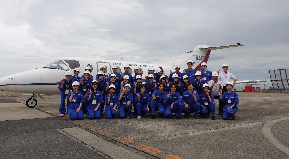 プログラムを通じて受講生が考案・準備してきた微小重力実験を、MU-300型機で実施して頂きました。
