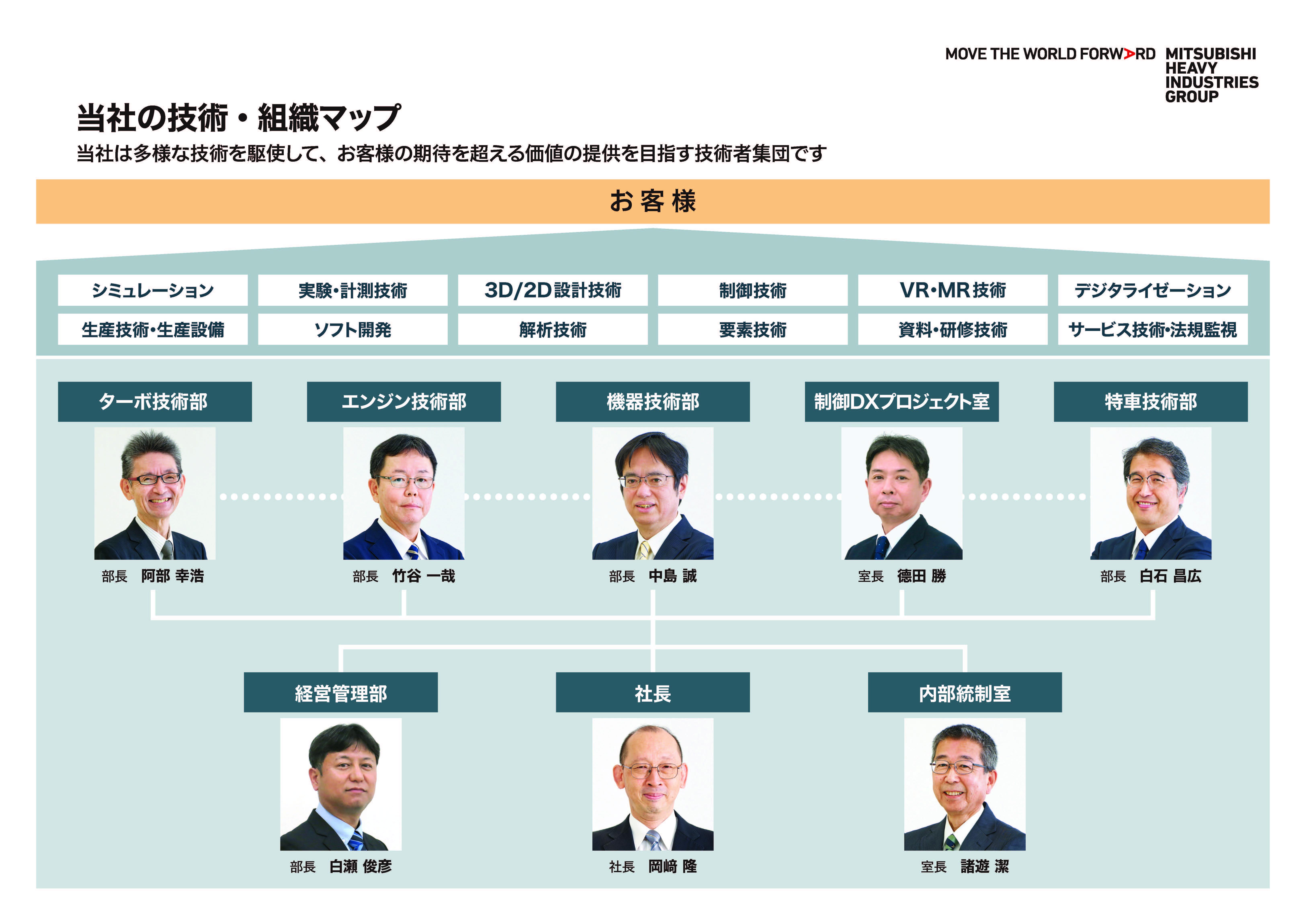 当社は神奈川県相模原市に拠点を置き、三菱重工業のグループ会社としてその事業に関わる機械設計、解析・シミュレーション、設備開発、資料・デジタルサービスなどを長年にわたり担当してきた総合エンジニアリング企業です。使命は「社会への貢献」との変わらぬ信念の下、グループ内企業はもとより、産業車両、建設機械、自動車、建設業界など多くのお客様に当社の技術をご活用頂いております。私たちの拠り所は「人と技術」であり、急速に変貌を遂げるSDGs社会においても真に求められる存在であり続けるべく、社員一同、日々研鑽を重ねて参ります。