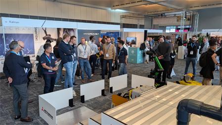 昨年に引き続き、10月20日から22日にかけてオランダ・アムステルダムで開催された「SPRINT Robotics World Conference for Inspection & Maintenance Robotics 2025」に、EX ROVR “ASCENT”を出展しました。本年度で10周年を迎えたこの会議には、35か国以上から550人を超える参加者が集まり、60以上の展示ブースと、50人以上の国際的に活躍するロボット関係者による講演が行われ、世界最大級の保守・点検ロボット展示会として盛況に開催されました。ブースでは、EX ROVR “ASCENT”の自動巡回点検デモに加え、マニピュレータを使ったレバー操作や、FPSOでの使用を模擬した船上での動作安定性確認結果などを展示しました。