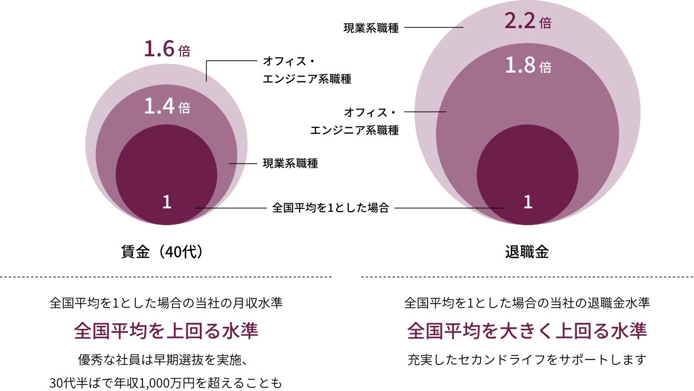 賃金、退職金ともに全国平均を上回る水準
