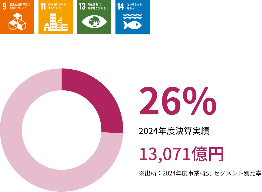 エナジードメインでは、高い発電効率を誇り、環境負荷の低減に寄与する「火力発電」、再生可能エネルギーを活用した「洋上風車」や「地熱発電」などの発電システムで、バランスのとれた質の高いエネルギーインフラを提供しています。さらに、大気汚染物質の排出を大幅に抑制する「総合排煙処理システム」、低燃費・低騒音の最新型航空機エンジン、石油化学分野でトップシェアを持つコンプレッサなど、多岐にわたる製品を扱っています。原子力セグメントでは、「原子力発電」の設計・製作・建設・保守、「核融合炉」の開発などに携わっており、低炭素化社会の実現に貢献しています。グローバル社会において低炭素化・脱炭素化が求められる中、地域や産業ごとに異なるニーズを反映しながら、持続可能な社会の実現を目指します。