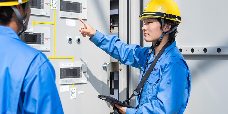 工場で使っている電気設備や上水設備の保守・管理をしています。機器を直接点検したり、データを確認したりしながら、設備が正常に稼働しているかをチェックします。