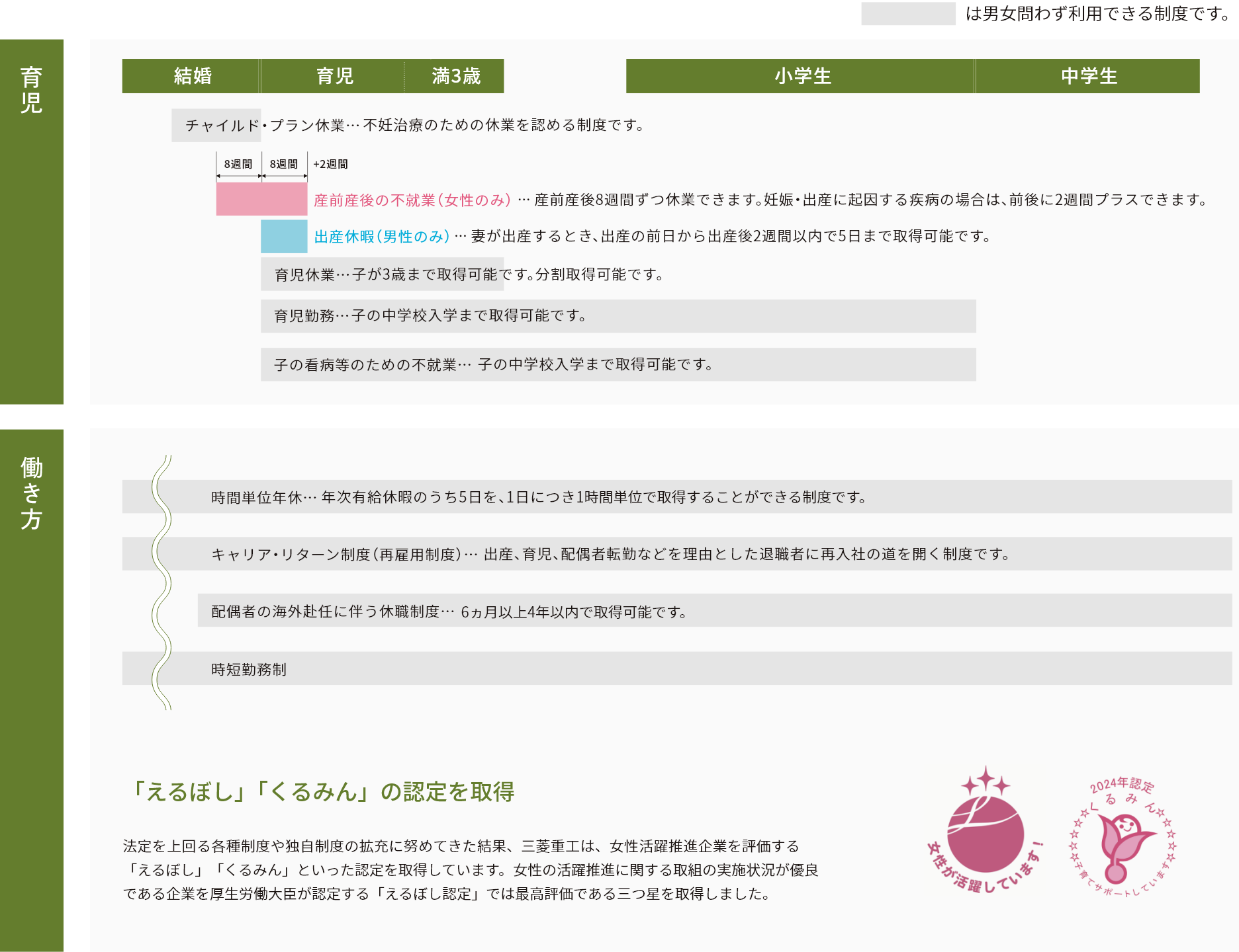 | 休暇の積立 | 最大60日 年次有給休暇の残存日数を最大60日まで積み立てられ、本人または家族の傷病等により休業する場合に充当することができる |