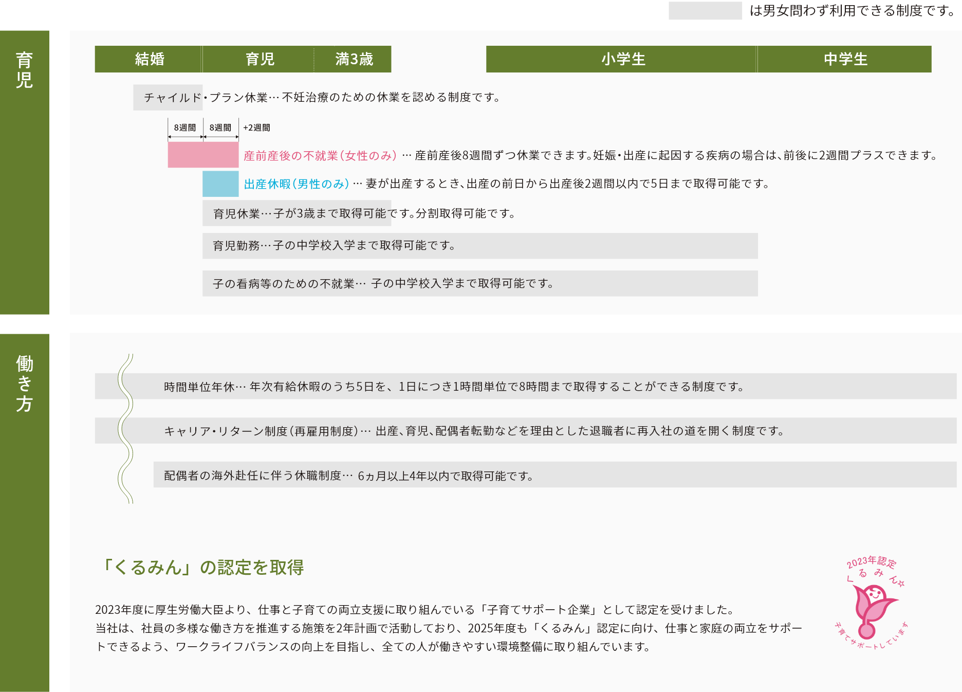 | 夏休み | 7月:4日間、8月:9日間 ※計画年休行使日を含む |