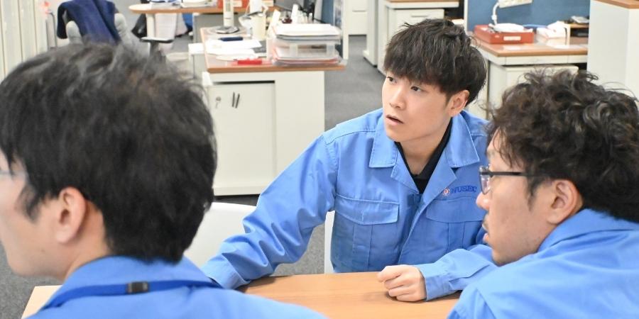 発電所の施設定期検査では、電力会社や協力会社との工程調整、安全管理・指導、品質チェックなど現地工事をとりまとめています。