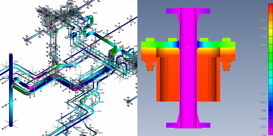 脱炭素化に向けた船舶の次世代化が進む中、本プロジェクトでは新燃料に対応した船舶設計に取り組んでいます。新燃料供給装置のモジュール設計をはじめ、搭載船の基本・詳細設計まで幅広く対応し、安全で効率的なシステム構築を目指しています。また、低温・高温・高圧環境にさらされる配管に対し、応力解析やサポート強度の評価を実施することで、信頼性の高い設計を追求しています。