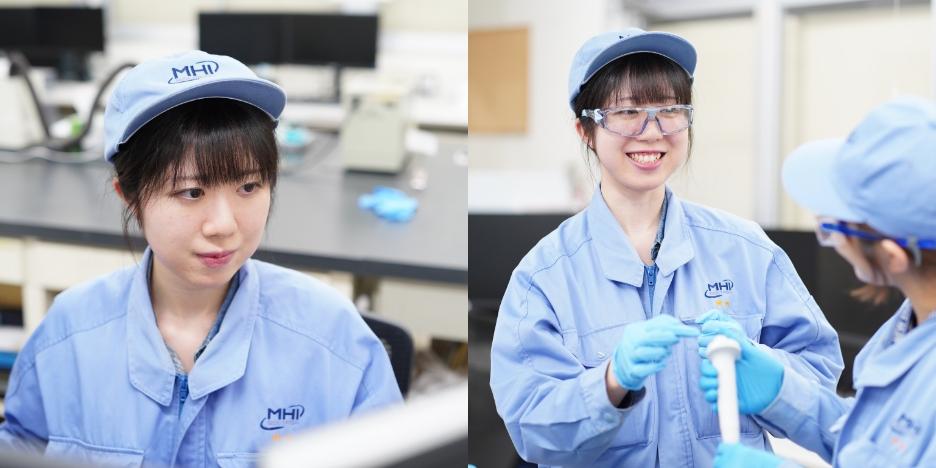 希望する勤務地かつ高水準の待遇や福利厚生の環境で、学生時代に学んだ化学系の専門知識を活かせる仕事ができるのはここしかないと思い、入社しました。仕事内容としては、様々な分析や実験に携われる点が魅力です。三菱重工のニュースや研究発表で、自分が一部でも分析で関わったものを目にする機会があるというのは当社ならでは。また、完全週休二日制に加え、入社時から22日間の有給休暇が付与され、自分の都合に合わせて勤務時間を調整できるフレックスタイム制のおかげで、仕事とプライベートのバランスを取りながら働けています。