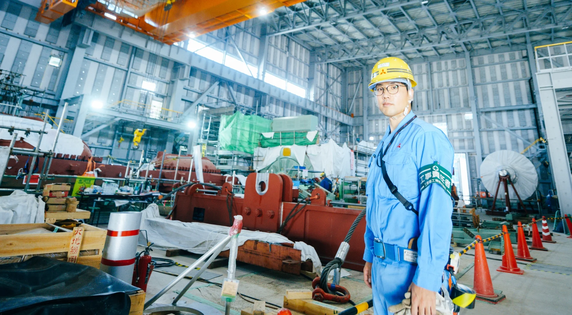 電力関係のプラントは全て巨大なので、機械を製造・設置するだけでも特殊な技術やノウハウが必要になります。私は入社5年目まで水力発電用の鉄管の生産技術を担当していました。形としてはただのパイプなのですが、強い水圧を受けるため約7メートルの直径に対して通常の肉厚が60ミリ、部位によっては120ミリほどもあり、加工だけでも大変なものになります。