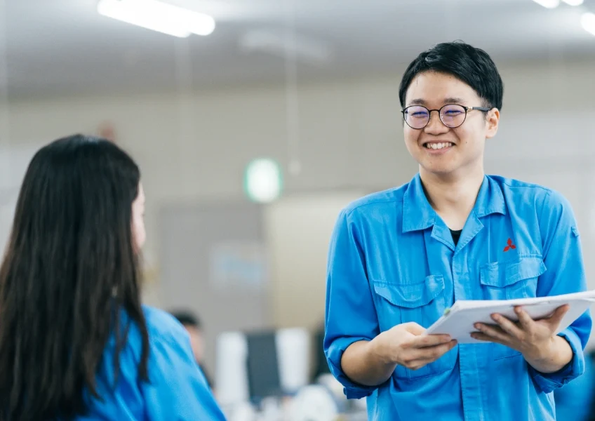 高専時代から航空業界に興味があり、自身もその製造過程に携わりたいと思っていました。三菱重工は、自身と同じ高専出身者が多く在籍していると聞き、安心して働けると感じました。さらに、エンジン部品製造、主翼製造、エンジンMRO(Maintenance=整備、Repair=修理、Overhaul=オーバーホール)といった広い分野で航空業界に携わることができる企業であることも魅力的でした。広い分野の製品を取り扱っている企業であるため、航空機以外の製品にも携わることができる可能性もあり、自身のキャリアの選択肢も広がると思いました。