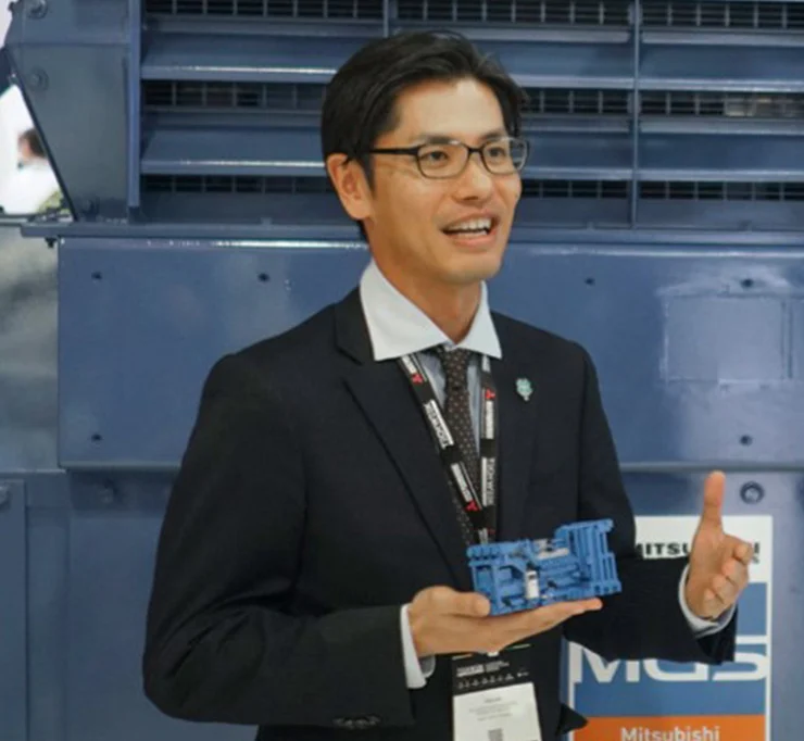 今回導入した発電セットは、「MGS(Mitsubishi Generator Series)」と呼ばれているもので、MHIETは2022年、21年ぶりに刷新した「MGS-R」を市場に投入した。「MGS-R」はターボチャージャの仕様変更や燃料系統、排気系の改善により高速始動を実現、発売当初からデータセンターなど高い信頼性が要求される市場を見据えていた。しかしそれは東南アジア・中東エリアをターゲットにしており、日本市場への逆輸入は想定外のことだった。「MGS-R」は今回、「MGS-JP(Japan)」と名を変え、「MGS-JP」構想と社内で命名された。この「MGS」の設計を担ってきたのが、発電システム設計課の平井琢哉である。