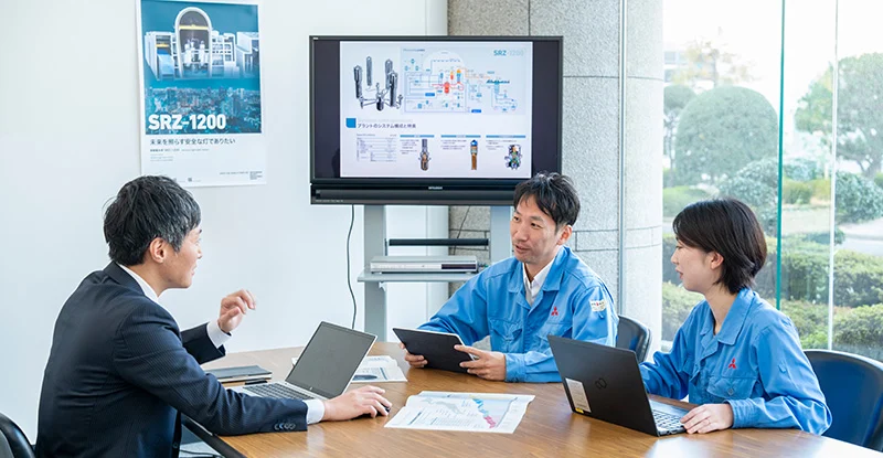 「いつかは、自分の手でプラントを建設したい。そんな思いを持って三菱重工の門を叩いた私にとって、革新軽水炉SRZ-1200の新設プロジェクトにアサインされたことは望外の喜びであり、不安よりもやってやるぞという期待感の方が遙かに勝りました。また、プロジェクトチームには学生時代とは異なり原子力以外の幅広い学科・専攻の出身者も多く、各々の専門分野や入社後に培った知識を活かして、完成に向けて思いを一つにお互いの技術力を高め合いながら取り組める環境であることも魅力と感じています」